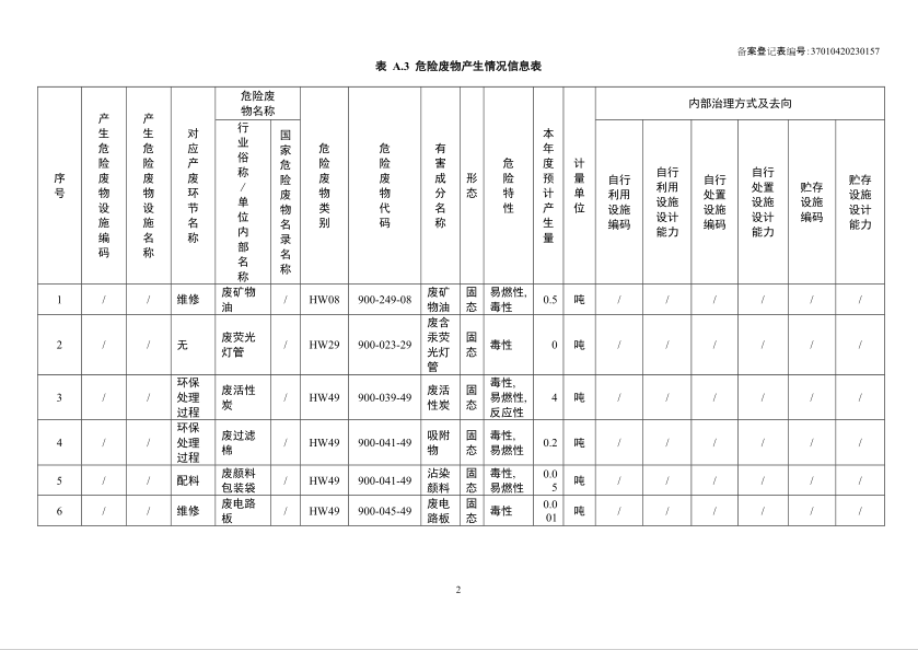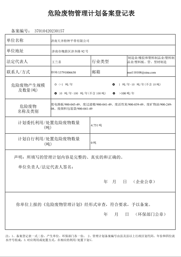 2023危險廢物管理計(jì)劃 危險廢物管理計(jì)劃備案登記表